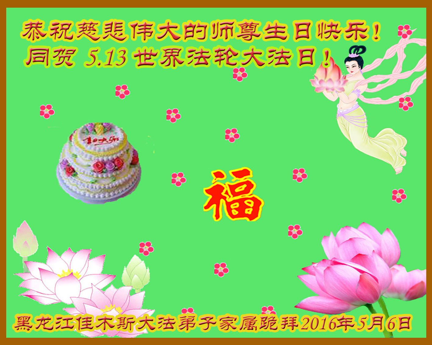 黑龍江佳木斯市大法弟子家屬恭祝師尊生日快樂!