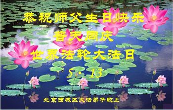 北京西城區大法弟子恭祝師父生日快樂!普天同慶世界法輪大法日!