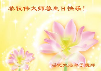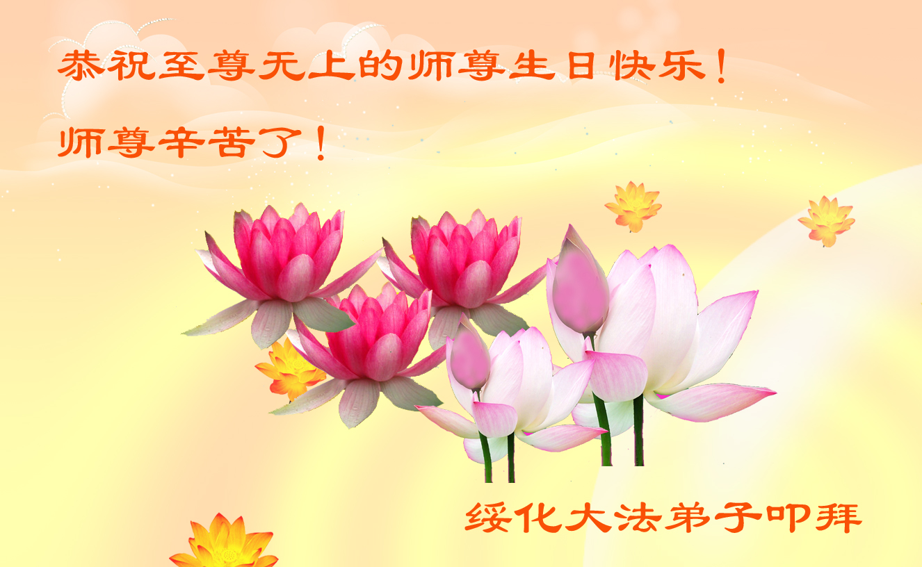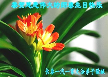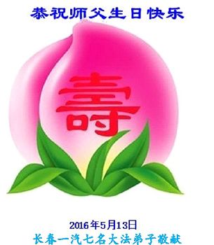 我們是一汽廠區七名老年大法弟子,在風風雨雨中,在師父的慈悲呵護下,我們心中一直在堅定著,堅守著修煉的信念。這是永遠不能動搖的目標。沒有師父和大法,就沒有一切。修煉是第一位的。儘管在修煉這條路上布滿了艱難和險阻,但我們深知修煉機緣的珍貴,師尊,我們一定要盡最大的努力的去做好三件事,讓師尊欣慰。在普天同慶的時刻,我們遙祝師尊生日快樂!