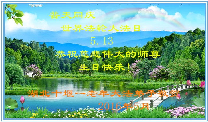 湖北十堰一老年大法弟子恭祝慈悲偉大的師尊生日快樂!普天同慶世界法輪大法日!