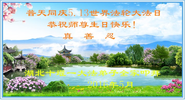 湖北十堰一大法弟子全家恭祝師尊生日快樂!普天同慶5.13世界法輪大法日!
