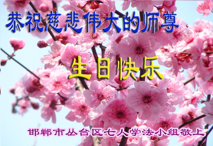 河北邯鄲市叢台區一學法小組大法弟子恭祝師尊生日快樂!