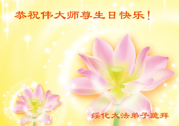 師父,在您生日來臨之際,弟子恭祝師父華誕快樂!自修煉以來,師父時刻在我身邊保護著我,使我能夠在修煉的路上走到今天。我還有沒修好的地方,以後加倍努力,做好三件事,信師,信法,精進實修,圓滿隨師還。