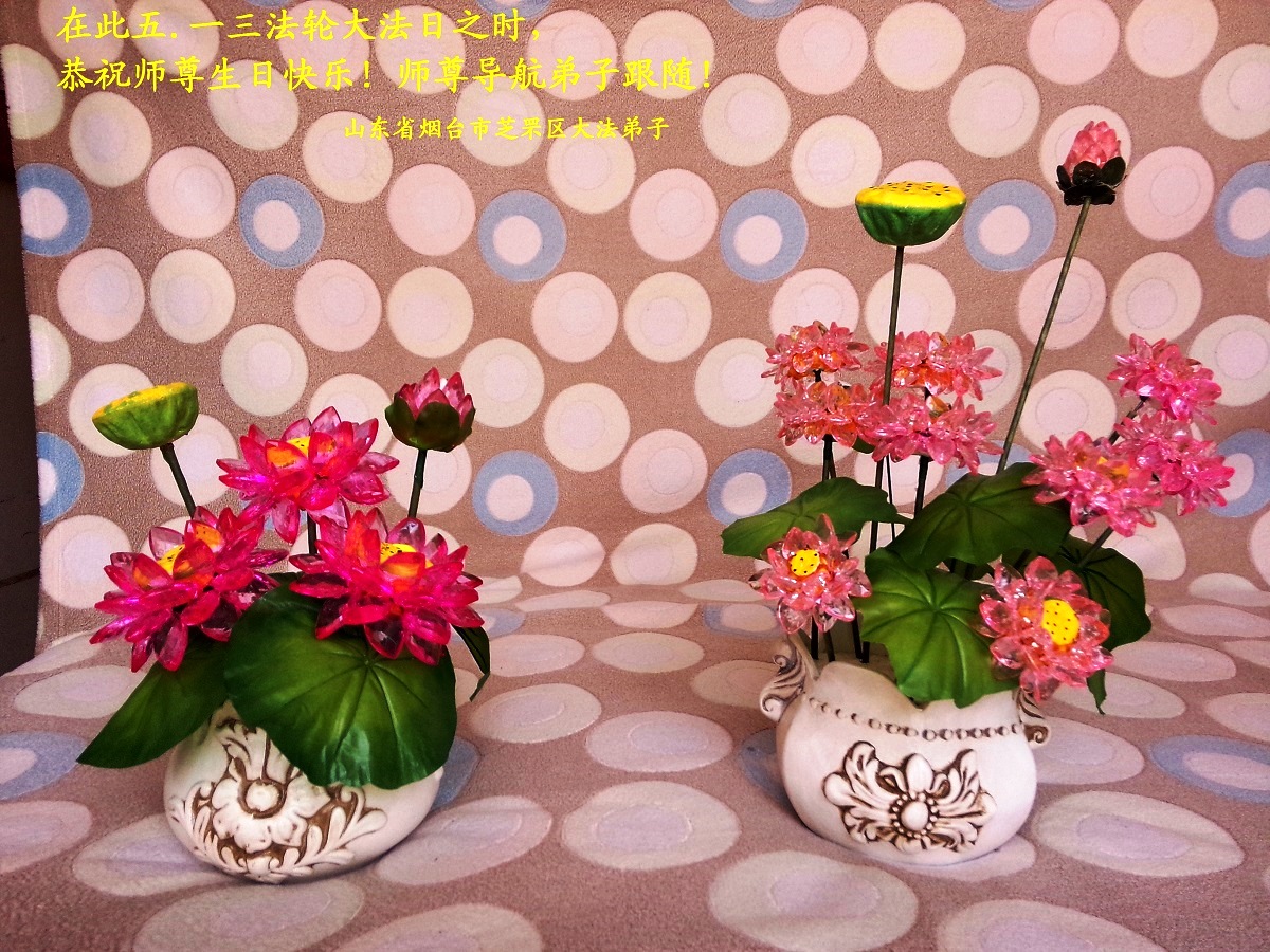 山東青島大法弟子恭祝師父生日快樂!恭賀世界法輪大法日!