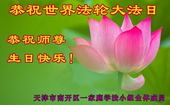 天津南開大法弟子普天同慶世界法輪大法日!恭祝師尊生日快樂!