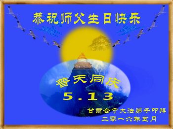 甘肅會寧─大法弟子恭賀法輪大法日!恭祝師父生日快樂!