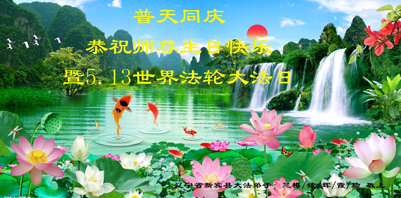 遼寧省撫順市新賓縣大法弟子祝師尊生日快樂!普天同慶世界法輪大法日!
