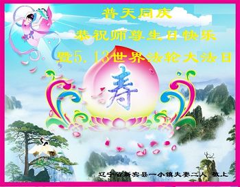 遼寧省撫順市新賓縣一小鎮大法弟子祝師尊生日快樂!恭賀世界法輪大法日!