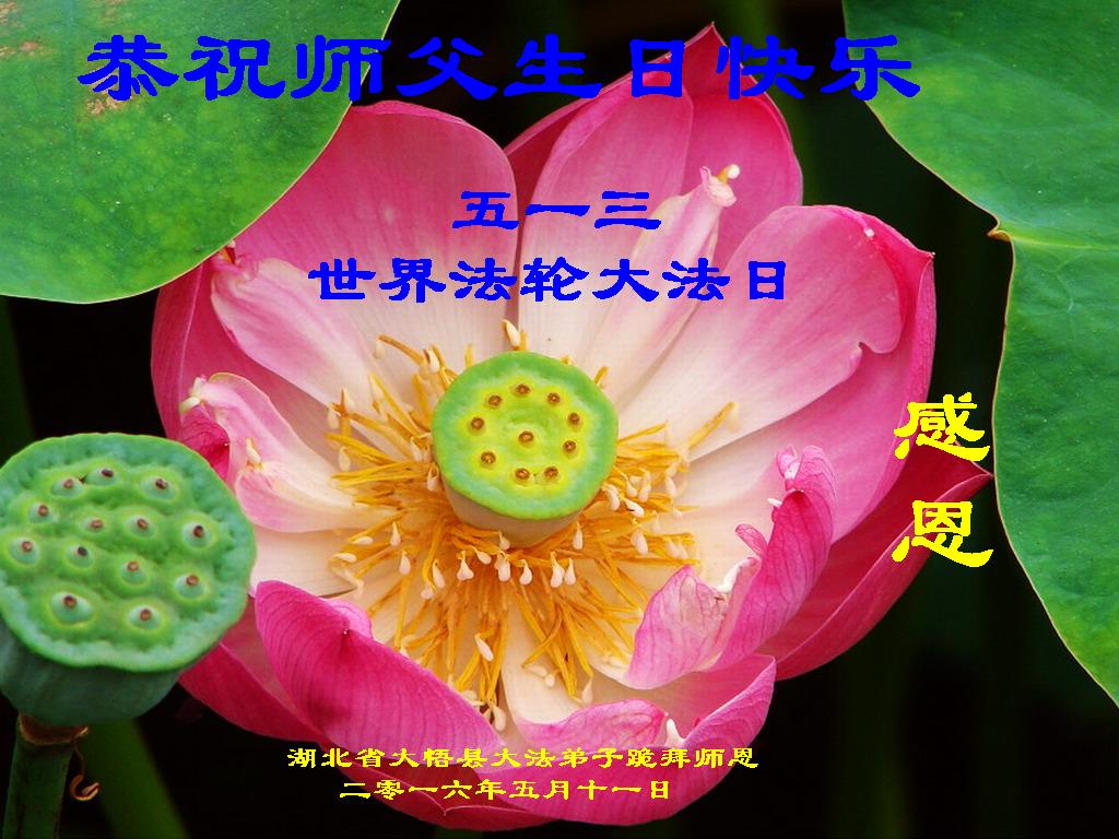 湖北省咸寧市溫泉大悟縣大法弟子恭祝師父生日快樂!恭賀世界法輪大法日!