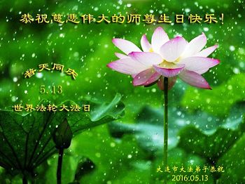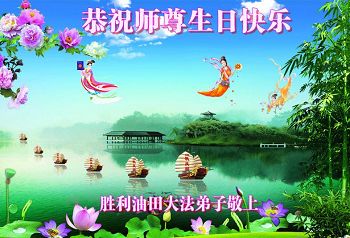 我們是大連高新園區的大法弟子,在此叩拜師父,恭祝慈悲偉大的師父生日快樂!我們一定實修不怠,做好三件事,隨師還!