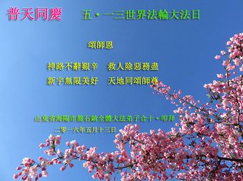 山東省煙台市海陽市全體大法弟子恭祝慈悲偉大的師尊華誕暨世界法輪大法日!