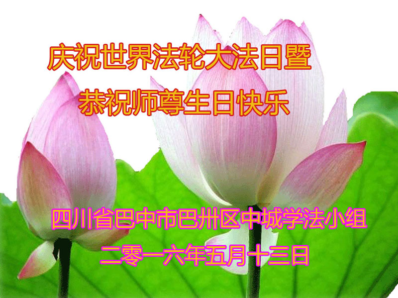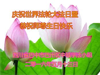 四川省巴中市巴州區中城學法組大法弟子恭祝師尊生日快樂暨慶祝世界法輪大法日!