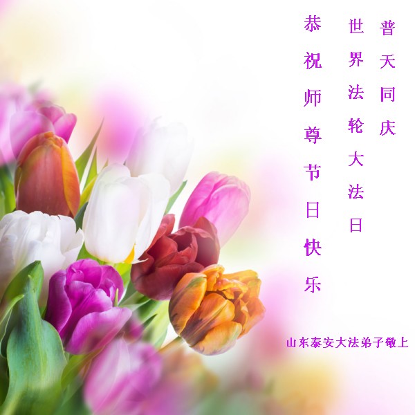 山東泰安大法弟子恭祝偉大的師尊節日快樂!普天同慶世界法輪大法日!
