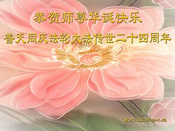 重慶市江北學法小組大法弟子恭賀師尊華誕快樂!普天同慶法輪大法傳世二十四週年!