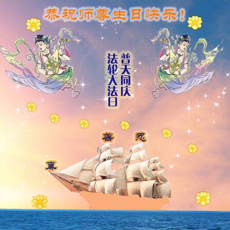 江蘇省南通市海門市一大法弟子全家恭祝師父生日快樂!歡慶世界法輪大法日!
