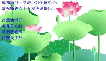 四川省成都南門一學法小組全體大法弟子恭賀世界法輪大法日暨師尊華誕!