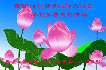 吉林省長春一女大法弟子恭祝慈悲偉大的師尊生日快樂!普天同慶法輪大法日!恭賀法輪大法洪傳24週年!