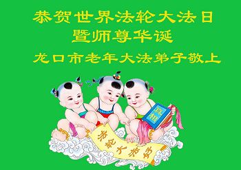 山東省煙台龍口市兩老年大法弟子恭賀法輪大法日!祝偉大的師尊生日快樂!