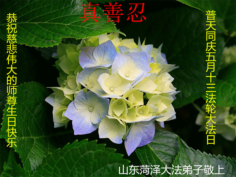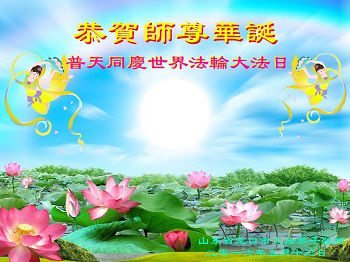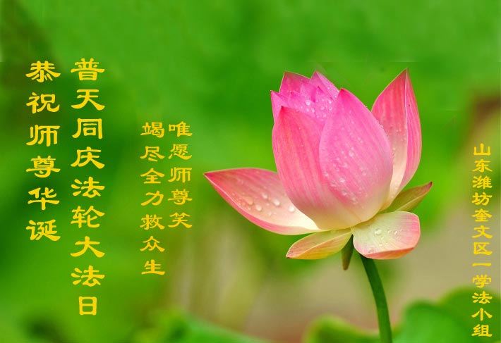 山東菏澤大法弟子普天同慶法輪大法日!恭祝師尊生日快樂!