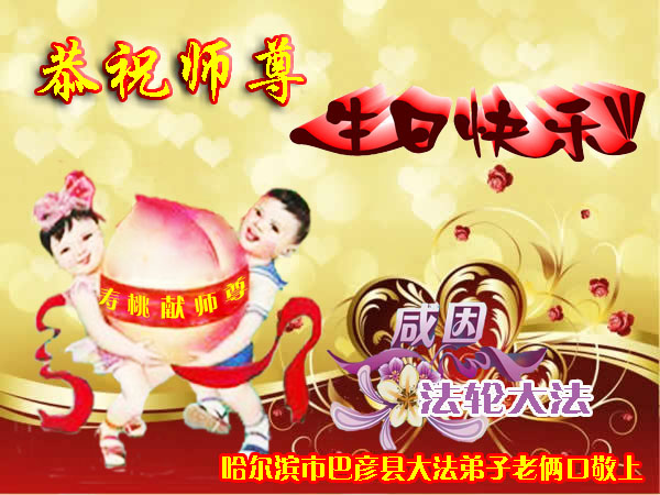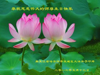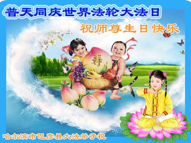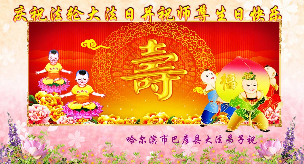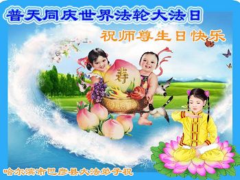 黑龍江省哈爾濱市雙城市區大法弟子恭祝師尊生日快樂!