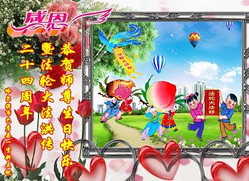 感謝慈悲偉大的師尊李洪志先生把法輪大法洪傳於世,使上億人身心受益,社會道德回升,「真善忍」的光輝普照大地,相信在未來的日子裏,「世界法輪大法日」將是人類最光輝、最神聖的節日。