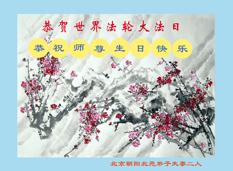 北京朝陽北苑大法弟子夫妻二人恭祝師尊生日快樂!