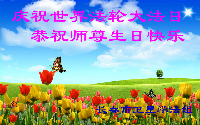 吉林省長春衛星學法小組大法弟子慶祝世界法輪大法日!恭祝師尊生日快樂!