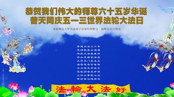 北京師範大學大法弟子全家恭祝慈悲偉大的師尊生日快樂!普天同慶世界法輪大法日!