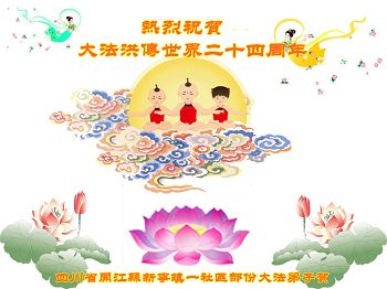四川省達州市開江縣新寧鎮一社區部份大法弟子祝賀大法洪傳世界二十四週年!