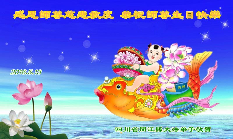 四川省達州市開江縣大法弟子感恩師尊慈悲救度、恭祝師尊生日快樂!
