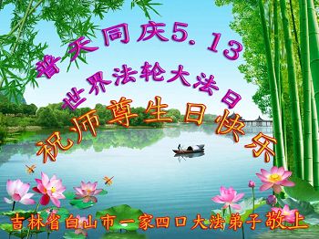 吉林省白山市一家四口大法弟子恭賀世界法輪大法日!