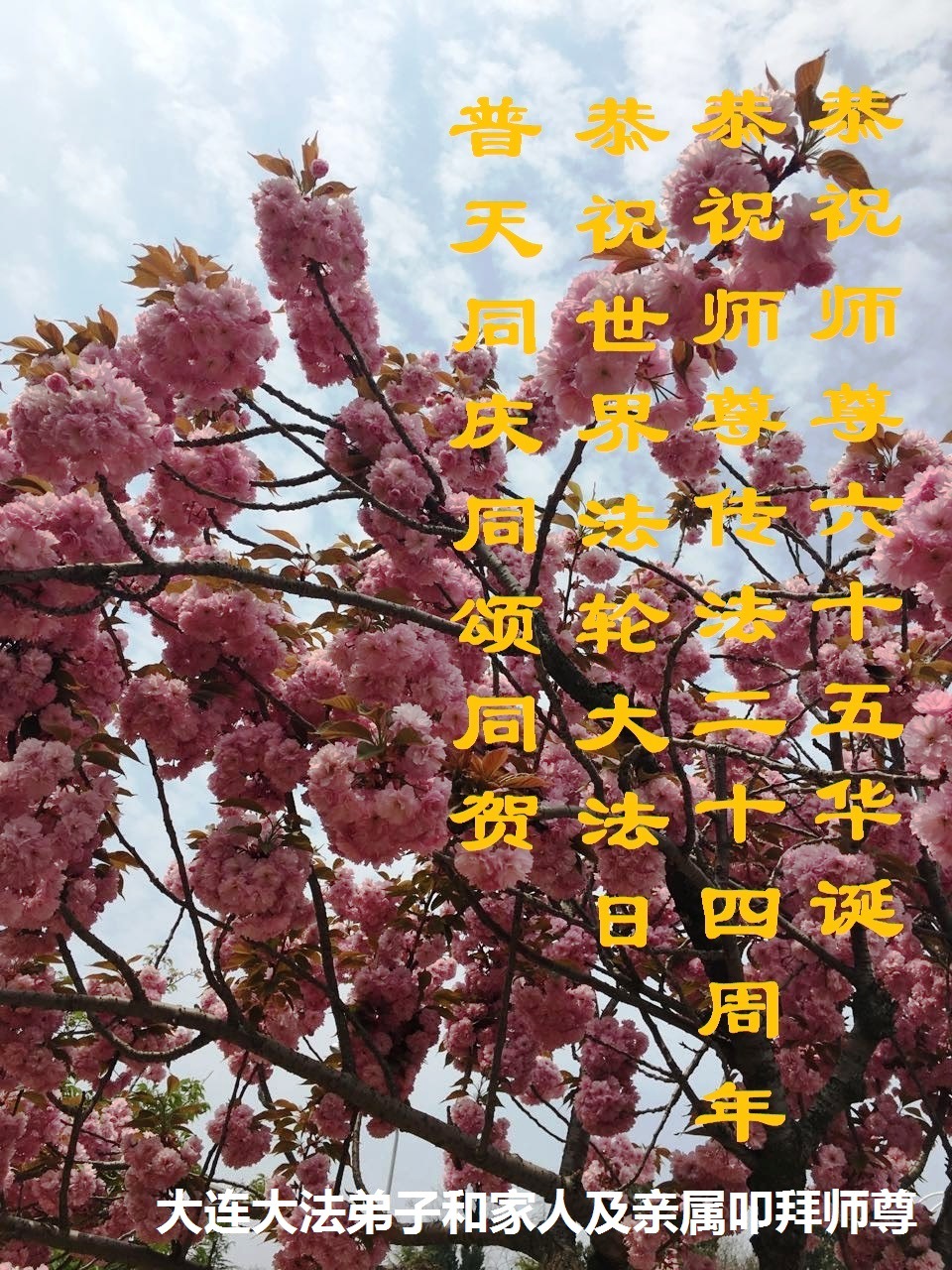 遼寧大連大法弟子和家人及親屬恭賀世界法輪大法日!