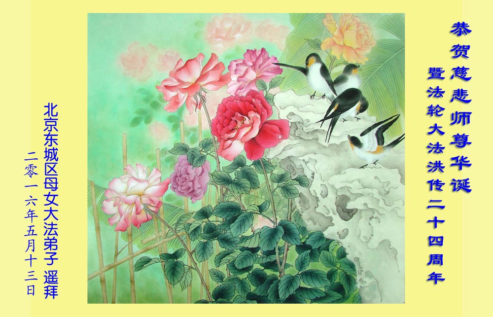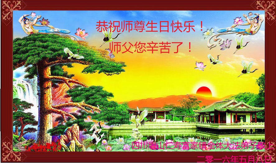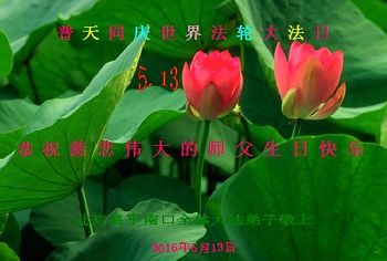 值此師父生日暨2016年5月13日世界法輪大法日,哈爾濱市阿城區一家庭五名大法弟子祝慈悲偉大的師父生日快樂!師父辛苦了!謝謝師父將真善忍高德大法傳於世間救度蒼生。