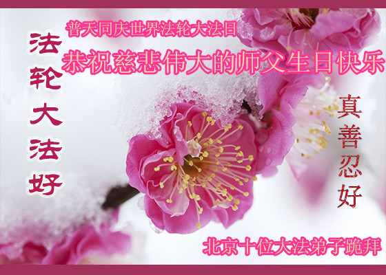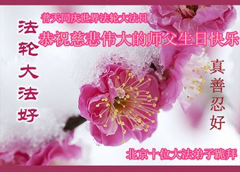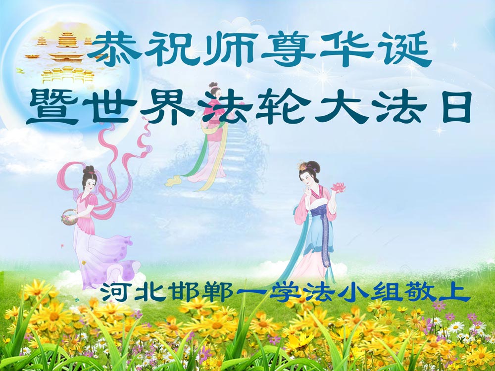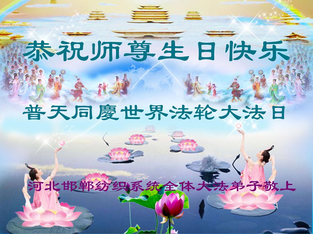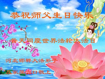 向全世界法輪大法513吉慶佳日到來之際,我們邯鄲一家夫妻二人向慈悲偉大的師尊叩拜:敬重祝願師尊生日快樂!師尊您辛苦了,弟子千言萬語也表達不盡,您對弟子們和眾生的洪大慈悲的救度之恩,只有按大法弟子的標準,完成下世助師正法,救度世人,圓滿大法弟子的責任,走向神,走好師尊給弟子安排的返本歸真這條路,圓滿隨師還。