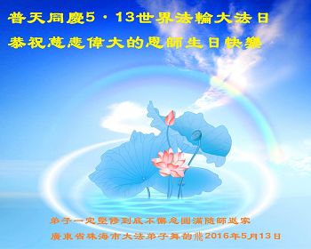 廣東珠海市一大法弟子恭賀法輪大法日暨師尊華誕