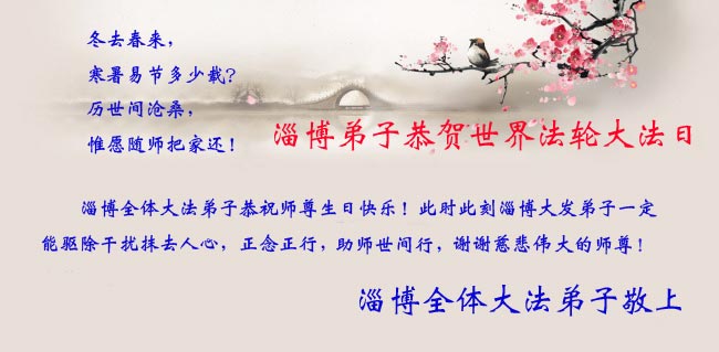 山東淄博大法弟子恭祝師尊生日快樂!恭賀世界法輪大法日!
