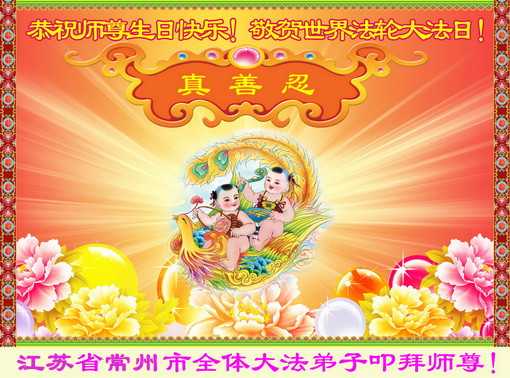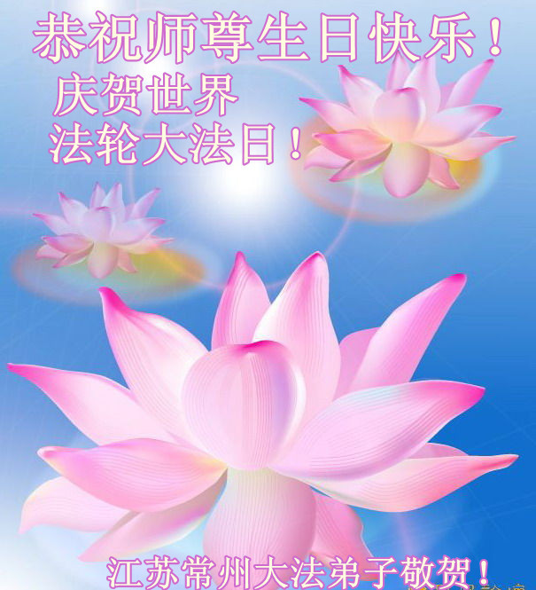 江蘇常州大法弟子全家恭祝師尊生日快樂!慶賀法輪大法日!