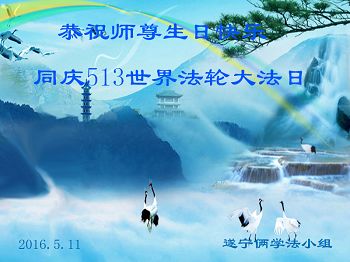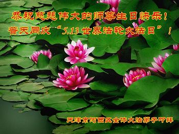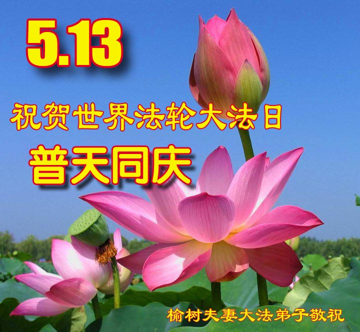 又一個百花盛開的季節,我們迎來了5.13世界法輪大法日。我們熱烈慶祝法輪大法洪傳世界二十四週年。在這普天同慶的盛大節日裏,弟子的感恩無以言表,是慈悲偉大的師尊把我們從地獄中撈起,教導我們明白了人生的意義,找到了生命的歸宿。在過去十七年邪惡血雨腥風的殘酷迫害中,是大法不斷指明方向,給我們戰勝邪惡的正念和勇氣。現在邪惡的殘渣餘孽猶存,迫害仍在繼續,我們將一如既往,除惡務盡。學法修心去執著,講真相救眾生不停步,緊跟師尊的正法進程,堅定修煉到底!