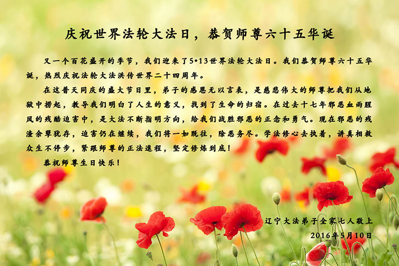 遼寧大法弟子全家七人慶祝世界法輪大法日!恭賀師尊華誕!