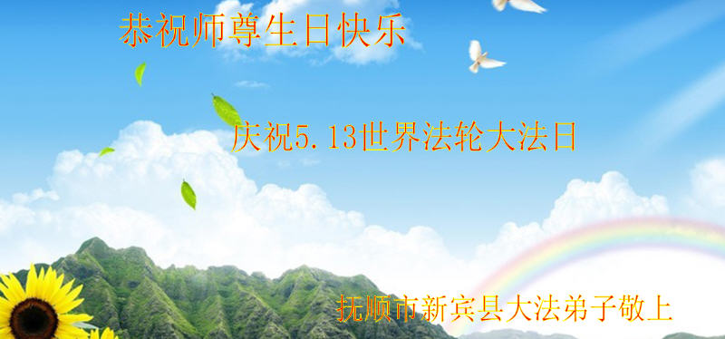 遼寧省撫順新賓大法弟子恭祝師尊生日快樂!慶祝世界法輪大法日!