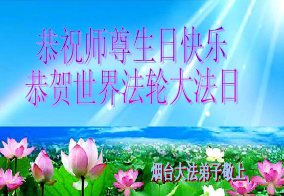 山東省煙台大法弟子恭祝慈悲偉大的師父生日快樂!恭賀世界法輪大法日!