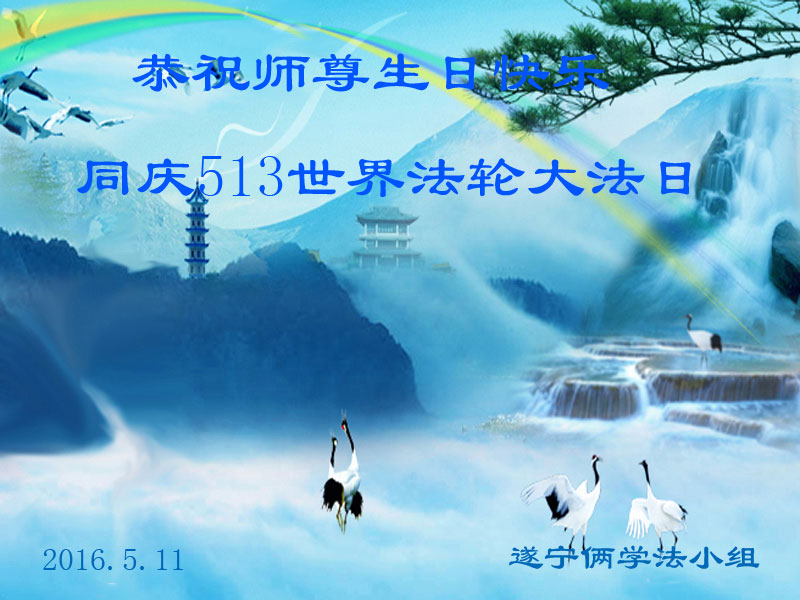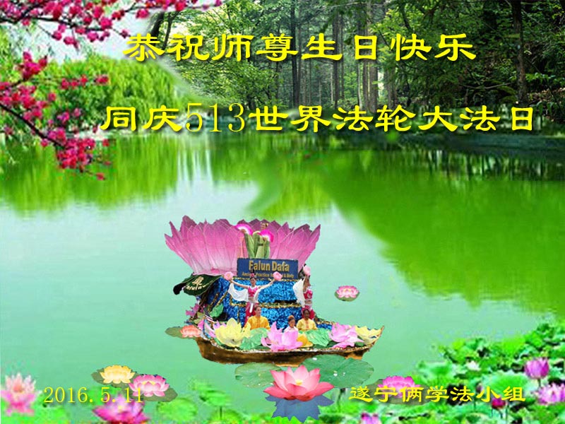 四川省遂寧兩個學法小組十位大法弟子恭祝師父生日快樂!同慶法輪大法日!