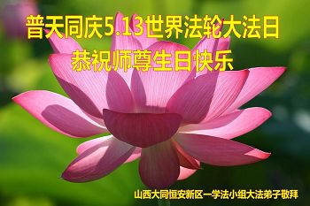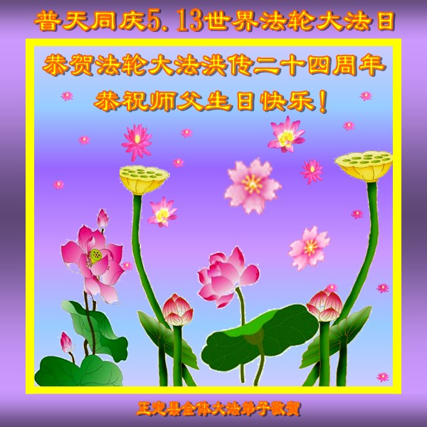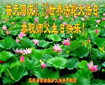 「五﹒一三」是世界法輪大法日,也是師尊的六十五華誕。在這普天同慶的日子裏,我們衷心恭祝慈悲偉大的師尊生日快樂!