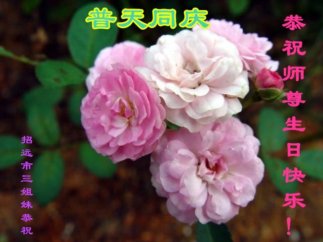 在這普天同慶的大喜日子裏,我們三姐妹衷心感謝師尊慈悲救度,是您教會了我們怎麼做人,明白了人生真正的目地。是您一次次從危險的邊緣把我們撈起,給了我們一切。師尊謝謝您!我們一定努力做好三件事,以報答您的救度之恩。