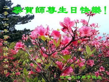 2016年世界法輪大法日來到了,在這喜慶之際,恭賀慈悲偉大的師尊法輪大法李老師:師父好!師父辛苦了!祝師父生日快樂!