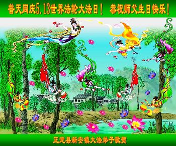 弟子們想念您!在最後的修煉道路上,我們正定縣全體大法弟子一定要做好三件事,跟上正法進程,救度更多的眾生!