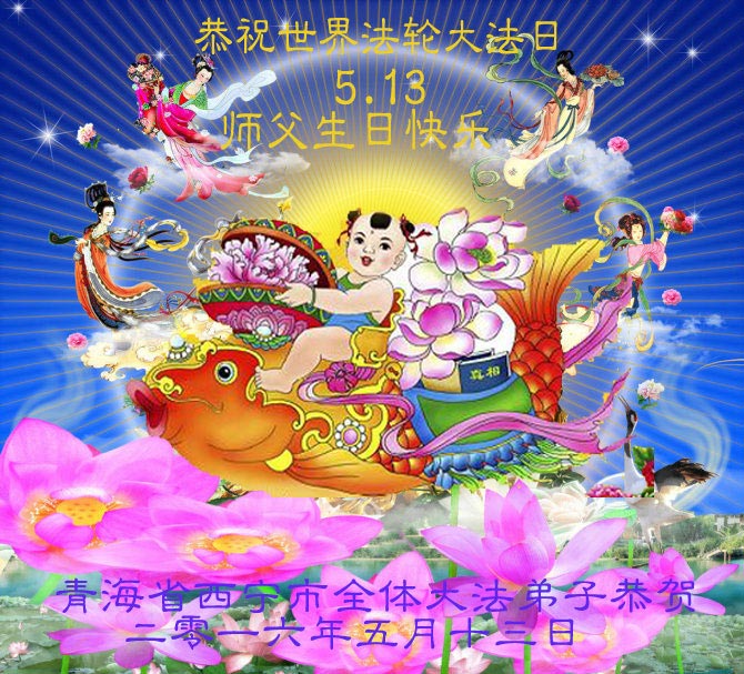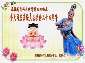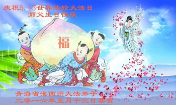 尊敬的師父您好!值此二零一六年五月十三日第十七屆世界法輪大法日暨師父華誕以及法輪大法洪傳世界二十四週年來臨之際,弟子代表不能上明慧網的青海大法弟子及明大法真相的善良世人向師父表達最最崇高的敬意!恭祝師父生日好!叩謝師父慈悲救度!