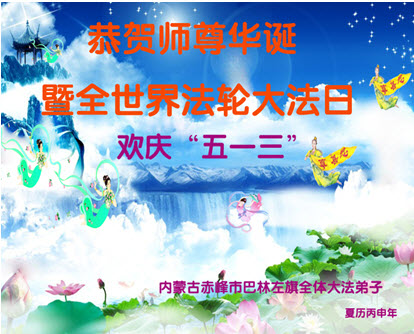 內蒙古赤峰市巴林左旗全體大法弟子恭祝師尊生日快樂!恭賀世界法輪大法日!