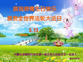 內蒙古赤峰市巴林左旗一家五名大法弟子及一名親人恭祝師尊生日快樂!恭賀全世界法輪大法日!