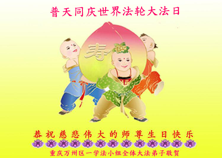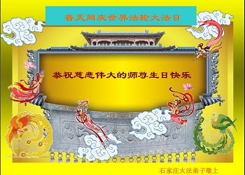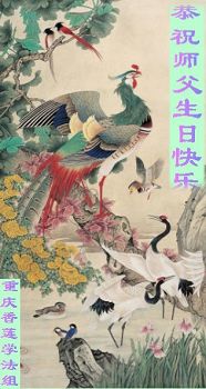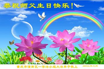 我和母親同修及學法小組的同修,恭祝慈悲偉大的師尊生日快樂!弟子們會徹底放下常人的一切執著,努力做好三件事,跟隨師尊到永永遠遠。